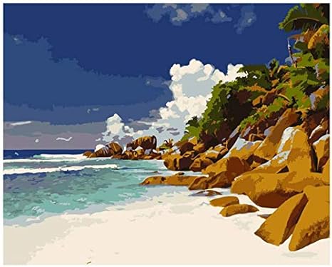 Fvfbd Malen Nach Zahlen Diy Riff Strand Am Meer Landschaft Leinwand Hochzeitsdekoration Kunst Bild Geschenk Kein Rahmen 40x50cm Amazon De Kuche Haushalt