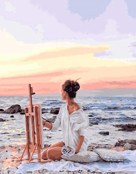 Boutiquespace Malen Nach Zahlen Kits Frau Am Strand Fur Kinder Und Erwachsene Anfanger Olgemalde Familie Wanddekoration Rahmenlos 40 50cm Amazon De Kuche Haushalt