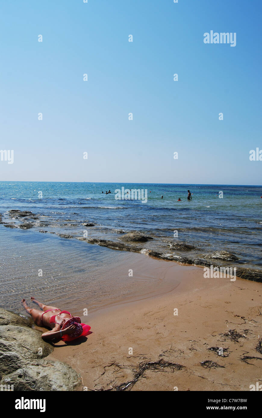 Scala Dei Turchi Sizilien Italien Strand Frau Mit Hut Und Rosa Bikini Sonne Am Strand Liegen Stockfotografie Alamy