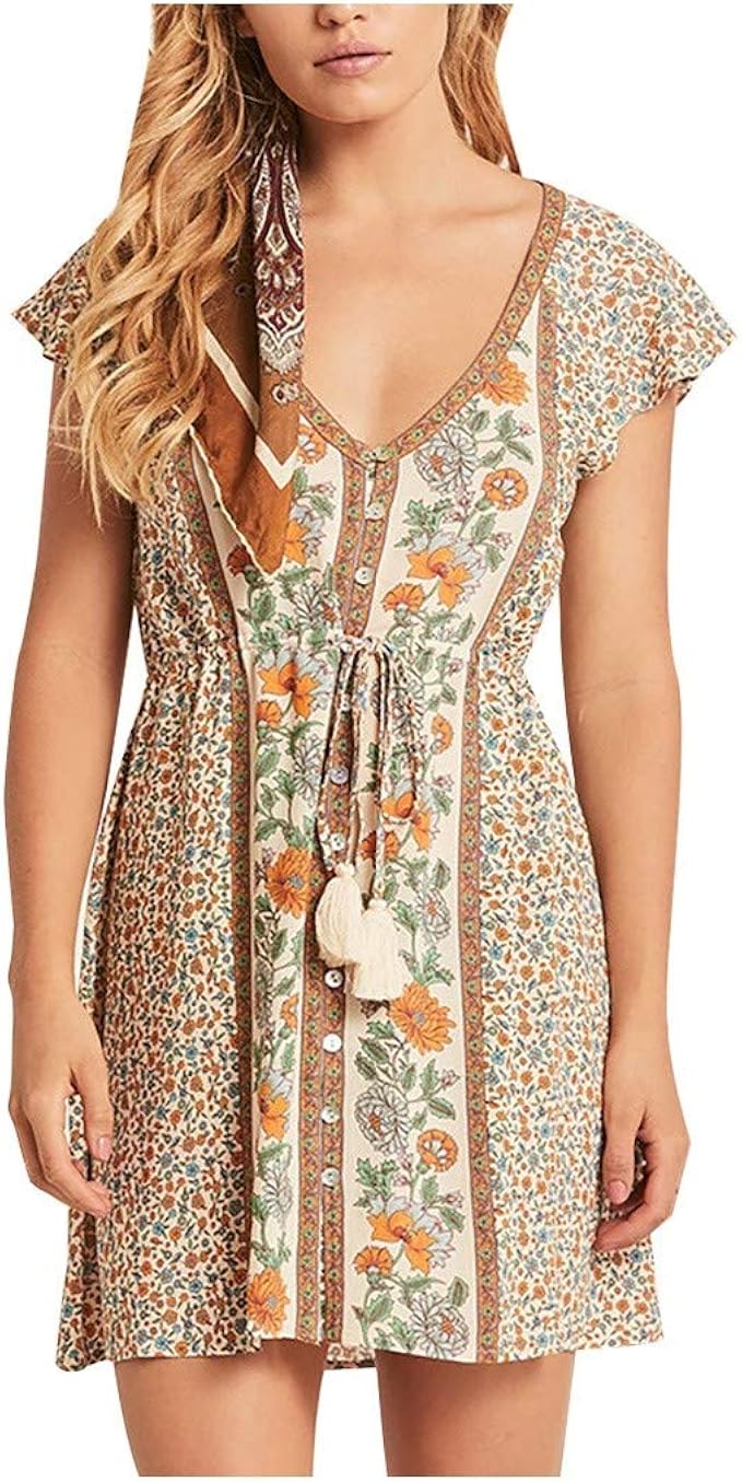 Xisimei Kleider Damen Boho Tiefer V Ausschnitt Kurzes Kleid Elegant Sommerkleid High Waist Kurzarm T Shirt Strandkleid Casual A Linien Minikleid Blumendruck Hochzeit Cocktail Party Fur Frauen S Xl Amazon De Bekleidung